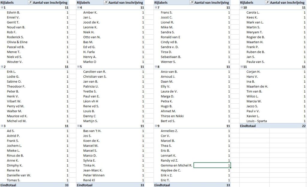 In het topjaar 2019 hadden we 169 deelnemers, hoe mooi zou het zijn als we dit minimaal kunnen evenaren. Zelfs als je geen wielrenfanaat bent is het leuk om mee te doen. Als je meedoet aan het spel, ga je anders kijken naar de deelnemers van de Tour de France.
