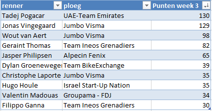 Welke renners had je moeten selecteren voor weekprijs 3?
