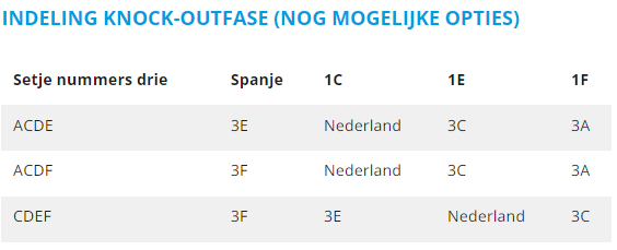 De laatste poule is bekend en daarmee ook de 8ste finales. Nederland, Slowakije, Slovenië en Georgië zijn de 4 beste nummers 3. In Power BI (op pagina 8) is het schema te bekijken. Nederland is door het verlies gisteren eigenlijk toevalligerwijs aan het op het oog gunstiger deel van het knock-out schema terecht gekomen.